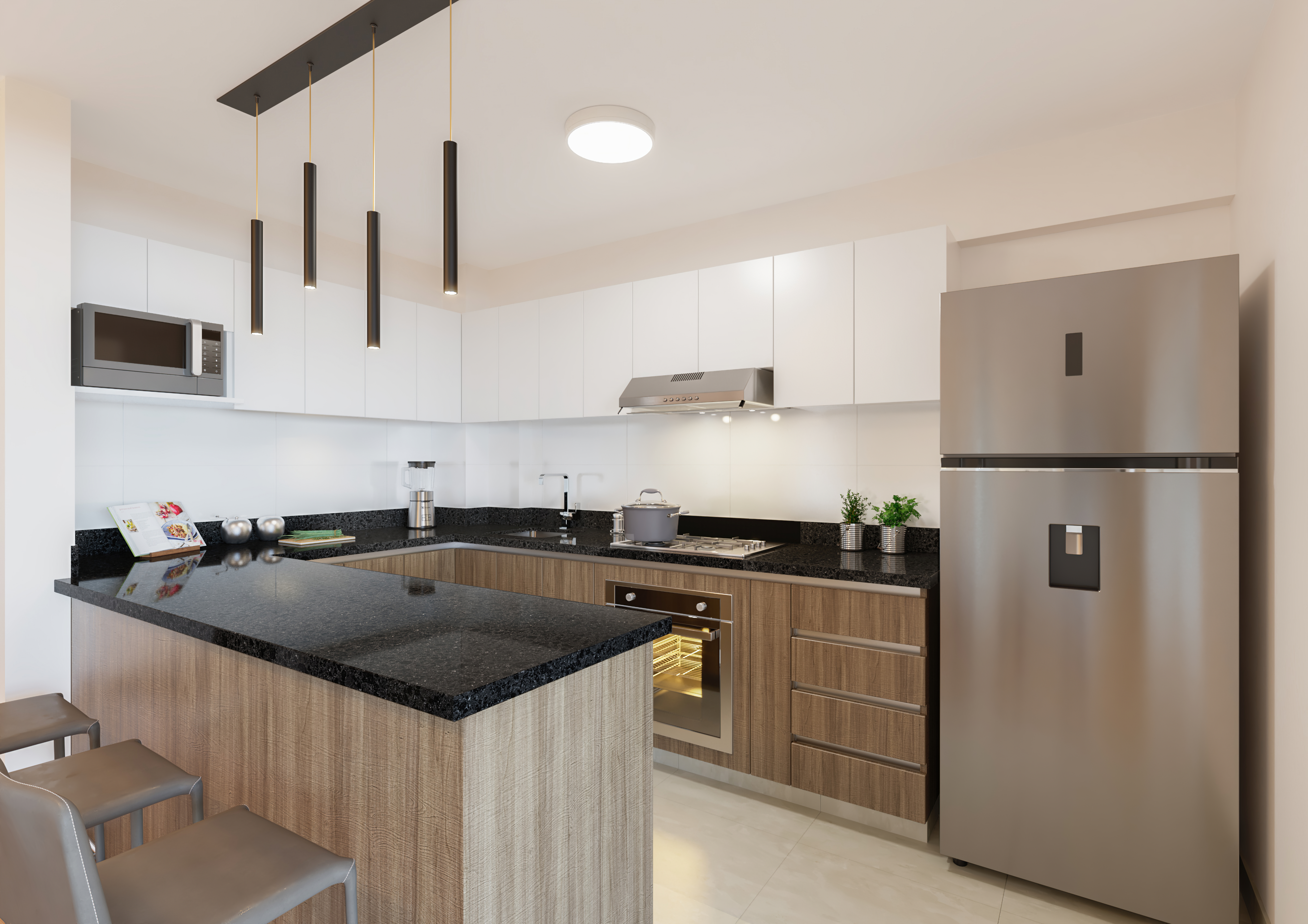 Muebles altos y bajos en cocina